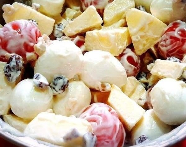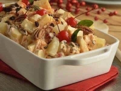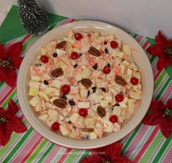 SIRVE la ensalada de manzana con leche condensada como guarnición de una rica cena navideña.